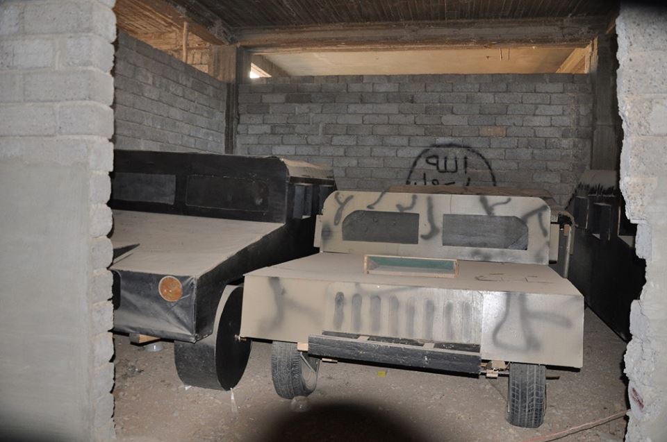 وذكر بيان لوزارة الدفاع "عثر قسم استخبارات عمليات تحرير نينوى احد تشكيلات مديرية الاستخبارات العسكرية على ورشة لصناعة مشبهات العجلات الوهمية من مادة الخشب التابعة لعصابات داعش الإرهابية".