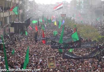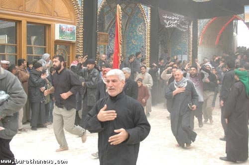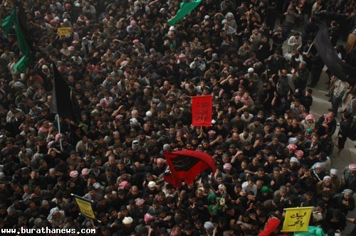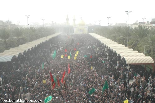 كربلاء تتوشح بالحزن الدامي وتسجل اليوم درسا للتاريخ مفاده ان هناك ثورة اصرار وتمسك بهذه العترة وان هناك ثمة رسالة على جميع الطغاة فهمها ان في هذه الامة من لايبيع اخرته بدنيا زائلة وان هناك من يقولون هيهات من الذلة .. هيهات منا الذلة ..