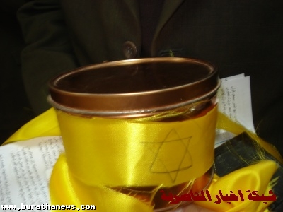 قطعة قماش يتم وضعها على جباه المسلحين ويتم رسم النجمة الاسرائيلية على القطعة