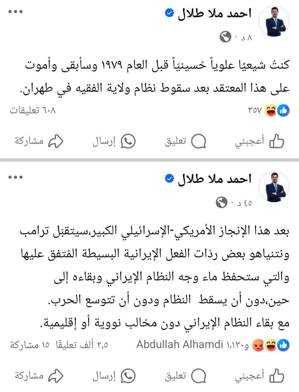 جاء الاعلان على خلفية نشر ملا طلال تغريدة اشاد فيها بالعدوان الامريكي الغاشم على الجمهورية الاسلامية في ايران حيث كتب مستبشرا بالهجوم الارهابي على المنشات النووية الايرانية يوم امس واعتبره انجازا كبيرا