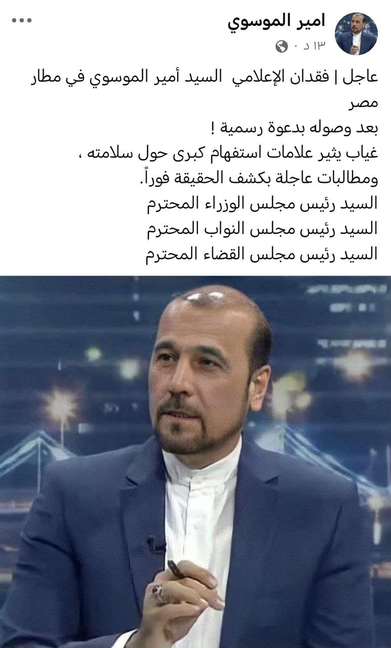 بعد وصوله الى مصر بدعوة رسمية اختفاء المحلل السياسي والإعلامي الايراني امير موسوي .