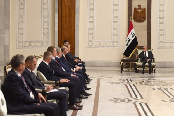 أكد رئيس الجمهورية عبد اللطيف جمال رشيد، اليوم الثلاثاء، أهمية توسيع آفاق التعاون مع روسيا، حيث ذكرت رئاسة الجمهورية في بيان، أن "رئيس الجمهورية عبد اللطيف جمال رشيد، استقبل في قصر بغداد، أمين عام المجلس الأعلى للأمن القومي لروسيا الاتحادية سيرغي شويغو والوفد المرافق له، وجرى خلال اللقاء، الذي حضره مستشار الأمن القومي قاسم الأعرجي، بحث العلاقات بين العراق وروسيا الاتحادية والسبل الكفيلة بتطويرها وبما يحقق تطلعات البلدين في التقدم والرفاه"، لافتة إلى أن "اللقاء تناول موقف العراق الرافض للاعتداءات الصهيونية على الفلسطينيين في قطاع غزة ودول المنطقة".