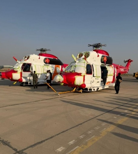 وذكر إعلام المديرية في بيان أن "الدفاع المدني استلم أول دفعة من الطائرات المروحية المستخدمة في عمليات الإنقاذ والإطفاء".