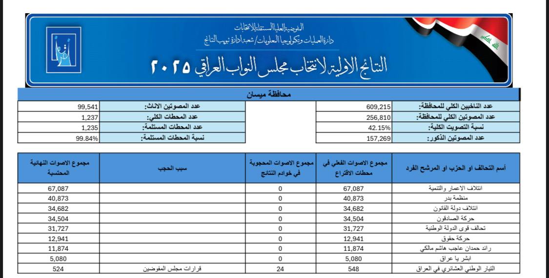 مفوضية الانتخابات نعلن عدد الاصوات التي حصلت عليها الكتل المرشحة في الانتخابات