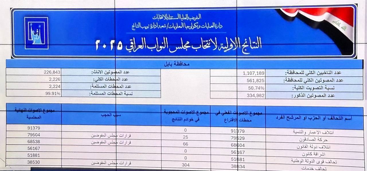 مفوضية الانتخابات نعلن عدد الاصوات التي حصلت عليها الكتل المرشحة في الانتخابات