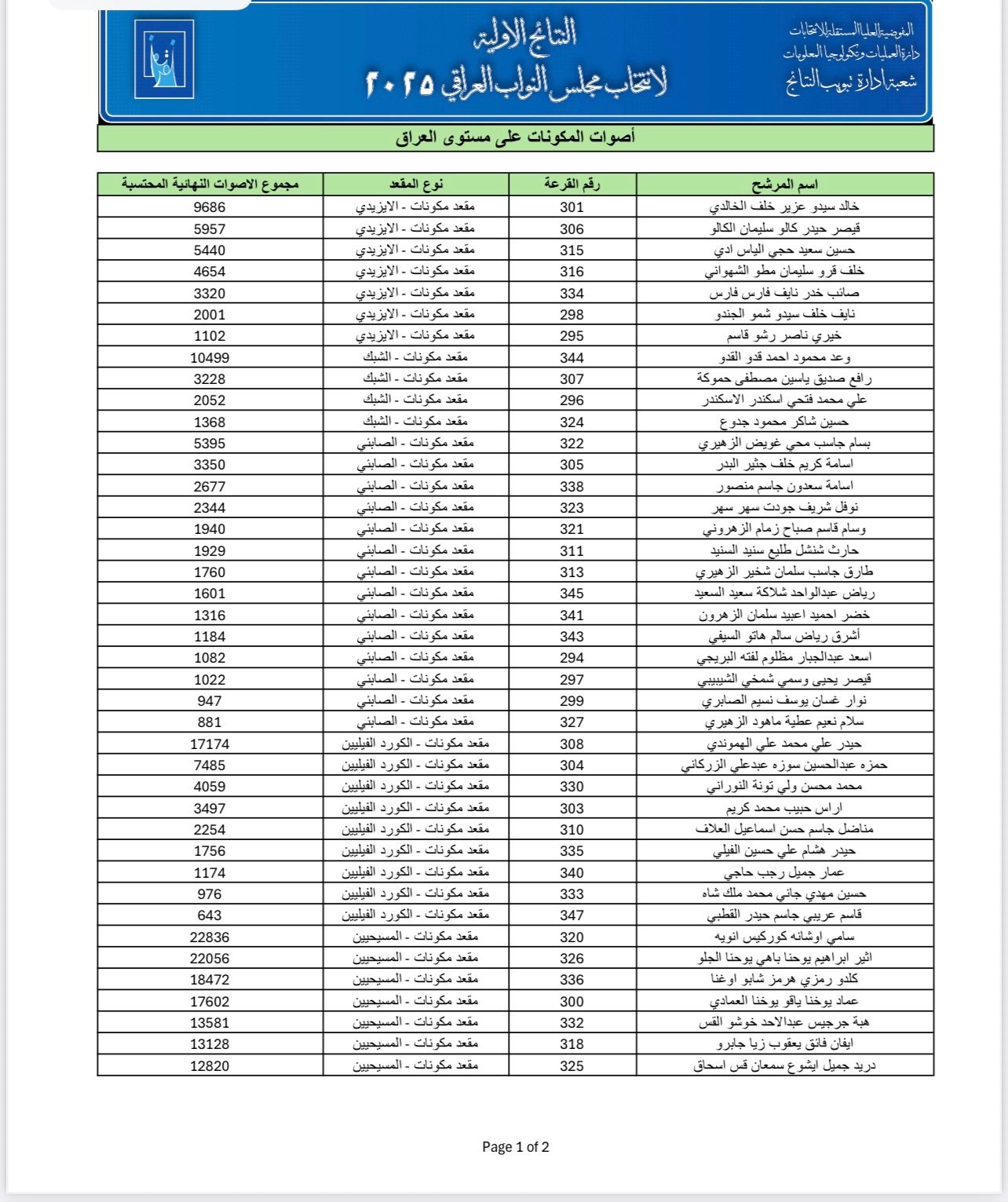 مفوضية الانتخابات نعلن عدد الاصوات التي حصلت عليها الكتل المرشحة في الانتخابات