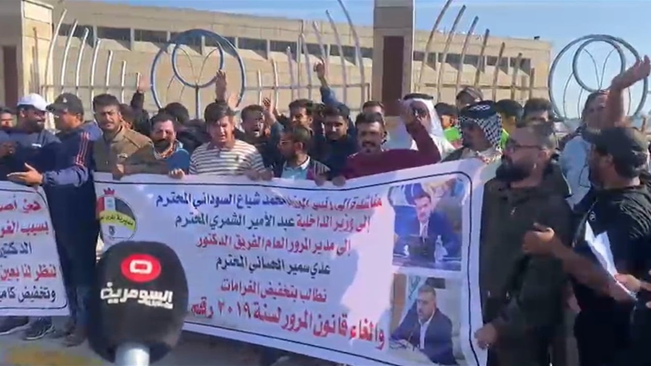 عشرات المواطنين يتظاهرون أمام مديرية المرور ببغداد بسسب غرامات لم ترتكب!