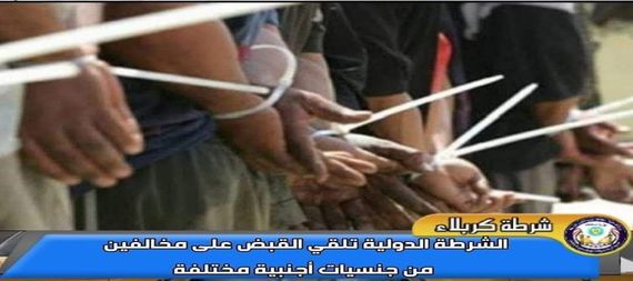 القت مفارز شعبة الشرطة العربية والدولية في كربلاء القبض على (27) مخالفًا لشروط الاقامة من جنسيات مختلفة .