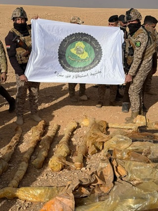وذكر بيان للاستخبارات أنه "في إطار العمليات الاستباقية لتعزيز الأمن وضبط مخلفات عصابات داعش الإرهابية، تمكنت كتيبة الاستطلاع في فرقة المشاة الخامسة التابعة لمديرية الاستخبارات العسكرية بالتعاون مع جهاز الأمن الوطني وبناءً على معلومات دقيقة، من ضبط كدس قديم للعتاد في صحراء الأنبار".