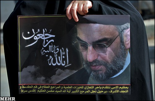 أقيمت مراسم تشييع جثمان الفقيد السيد عبدالعزيز الحكيم رئيس المجلس الأعلى الإسلامي العراقي, صباح الخميس أمام مبنى السفارة العراقية في طهران.وحضر مراسم التشييع العديد من الشخصيات الدينية والسياسية العراقية والايرانية والعربية . والقى الحاضرون كلمات ابنوا فيها الفقيد وعزوا انصاره ومحبيه واقاربه واسرته بهذا المصاب الجلل وتمنوا لهم الصبر والسلوان .