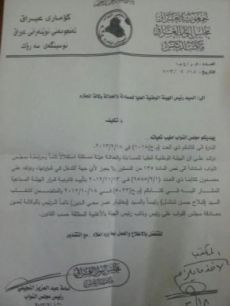 نسخة من كتاب النجيفي المتضمن بقاء فلاح شنشل رئيسا لهيئة المساءلة والعدالة