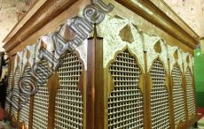 الشروع بتركيب القطع الفضية للشباك الجديد لضريح الامام الحسين عليه السلام