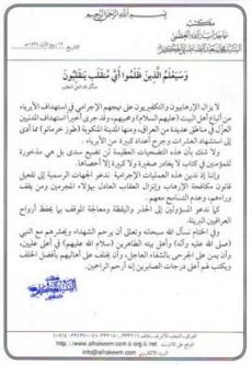 المرجع الديني الكبير السيد محمد سعيد الحكيم يدين تفجير طوز خور ماتو ويدعو الى تفعيل قانون مكافحة الارهاب