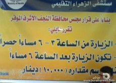في “محافظة النجف الأشرف بقيادة دولة القانون “أغرب إعلان: الزيارة حتى السادسة مساءا فقط.. إلا اذا دفعت 10 آلاف دينار!!!