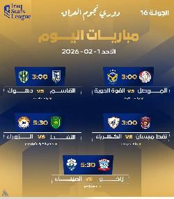 دوري نجوم العراق: خمس مباريات في ختام الجولة الـ 16 من هذا اليوم