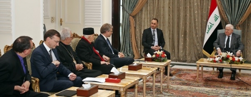 وذكر بيان رئاسي ان "معصوم استقبل في قصر السلام ببغداد وفد مجلس الكنائس العالمي، وأكد أن العراق الذي يحقق بعزم مقاتليه وشعبه الانتصار الناجز على داعش سيجعل إعادة الاعمار والبناء وعودة النازحين والمهجرين، وخصوصاً أبناء الديانات، إلى مدنهم وقراهم في مقدمة الأولويات التي تتطلب عملاً وطنياً حثيثاً ودعماً دولياً لتأمين متطلبات ذلك".