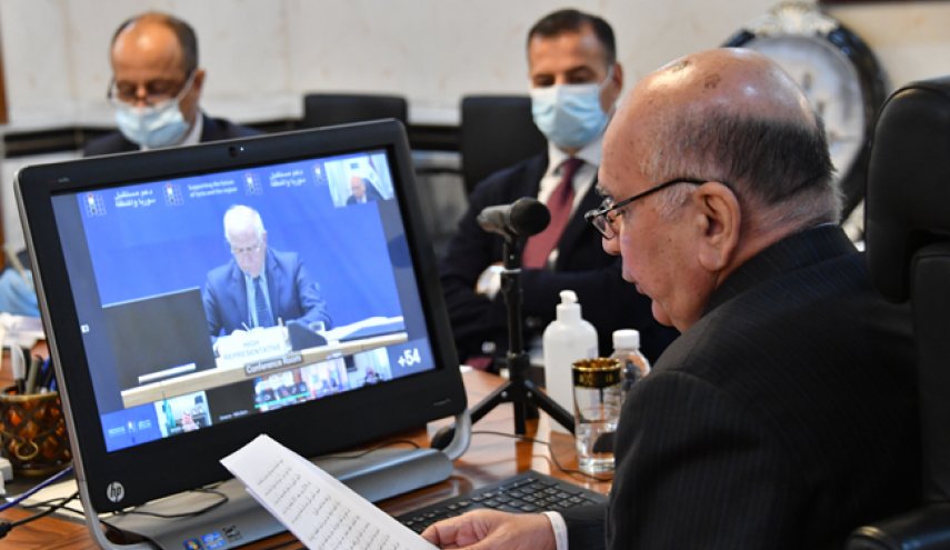 وذكر بيان للخارجية العراقية أن حسين أكد، أثناء مشاركته، عبر الفيديو، في مؤتمر بروكسل الرابع حول دعم مستقبل سوريا والمنطقة، "أن العراق يدعم الحفاظ على وحدة سوريا، وسيادتها، وسلامة أراضيها، واستقلالها، وعدم التدخل في شؤونها الداخلية، ويدعم عودتها إلى المنظومة العربية".