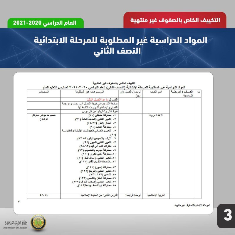 تكييف منهاج المراحل غير المنتهية / الفصل الثاني / الدراسة الابتدائية.