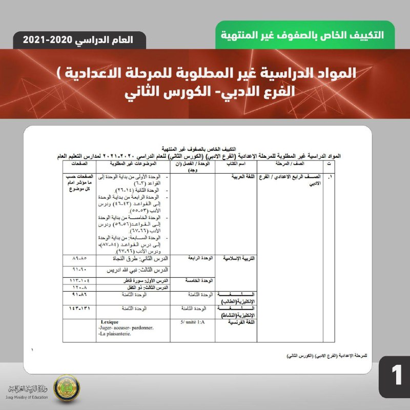 تكييف منهاج المراحل غير المنتهية / الكورس الثاني / الدراسة الاعدادية (الفرع الادبي).
