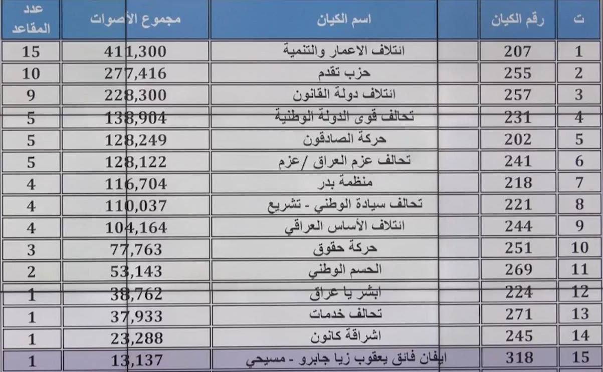 🔹النتائج النهائية لمحافظة بغداد