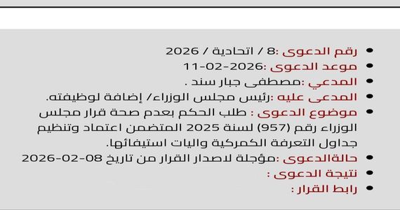 قررت المحكمة الاتحادية ، تحديد يوم الاربعاء المقبل ، موعدا للبت في دعوى تقدم بها عدد من النواب للطعن بقرار المجلس الوزاري للاقتصاد بزيادة رسوم التعرفة الجمركية وفرض الضرائب
