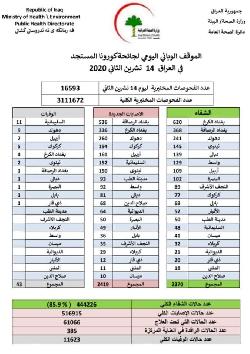 الصحة تعلن الموقف الوبائي لكورونا في العراق