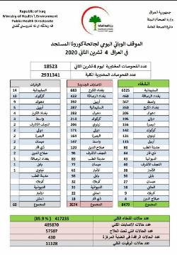 الصحة تعلن الموقف الوبائي اليومي لجائحة كورونا في العراق