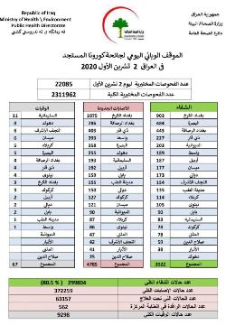 الصحة تعلن الموقف الوبائي الخاص بجائحة كورونا في العراق