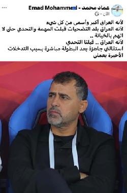 عماد محمد يستقيل من تدريب المنتخب الأولمبي بسبب التدخلات بعد كأس آسيا