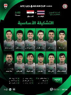 تشكيلة الأولمبي العراقي لمواجهة تايلاند ضمن نهائيات آسيا