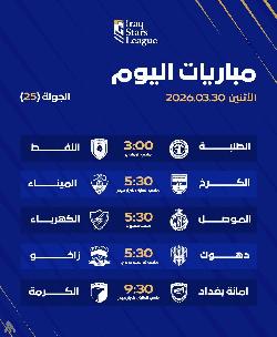 دوري نجوم العراق: اليوم، انطلاق الجولة الـ 22 من بأربع مواجهات